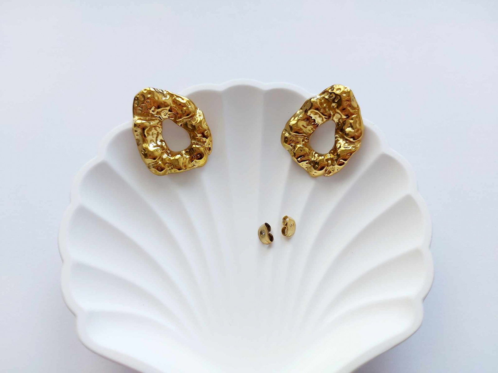 Cu un design unic, care evocă formele imperfecte ale apei sau ale scoicilor, acești cercei sunt potriviți pentru a adăuga o notă de rafinament oricărei ținute.