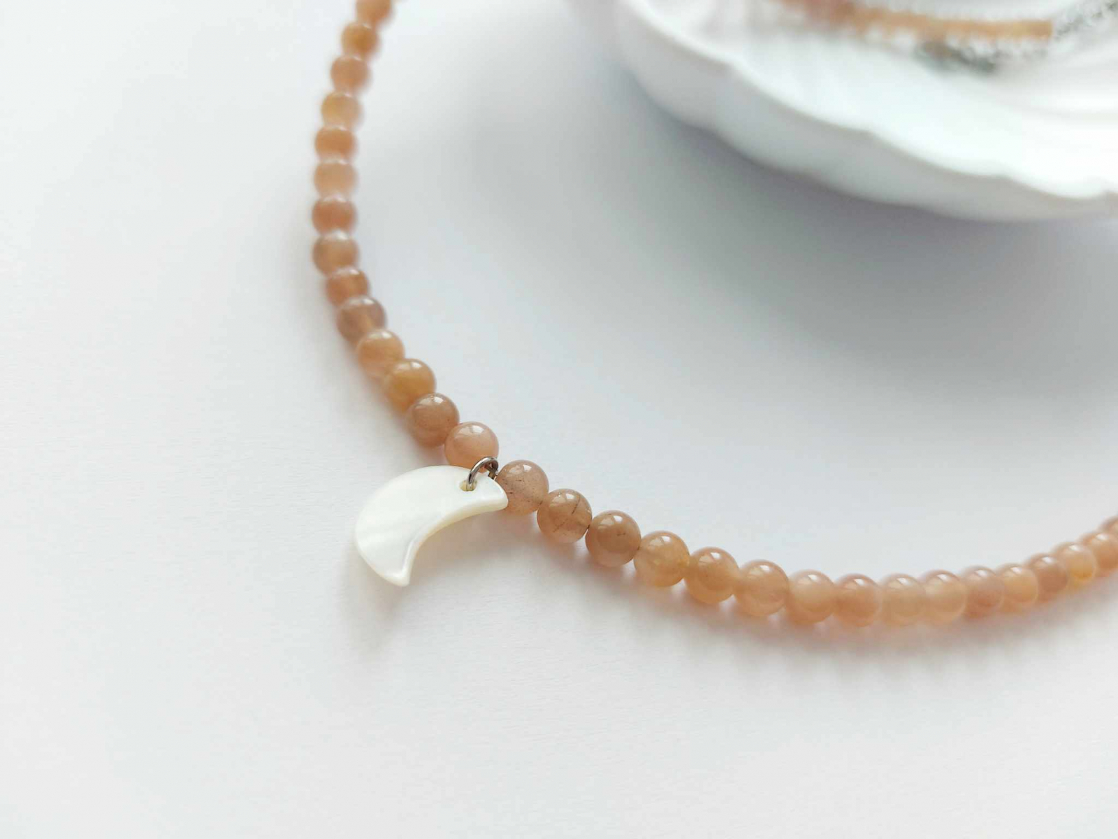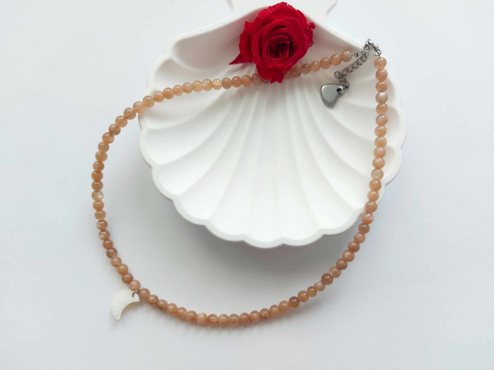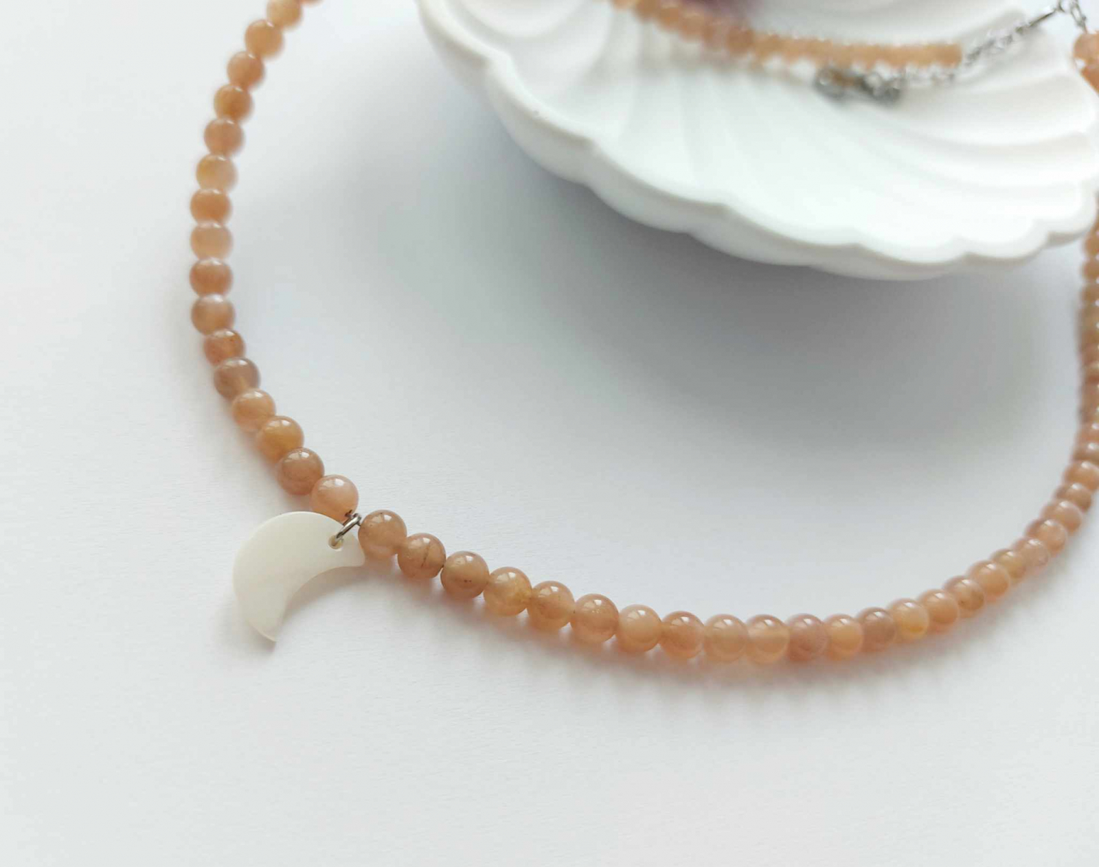 • Materiale - piatra soarelui, pandantiv lună din sidef, sistem de închidere din oțel inoxidabil