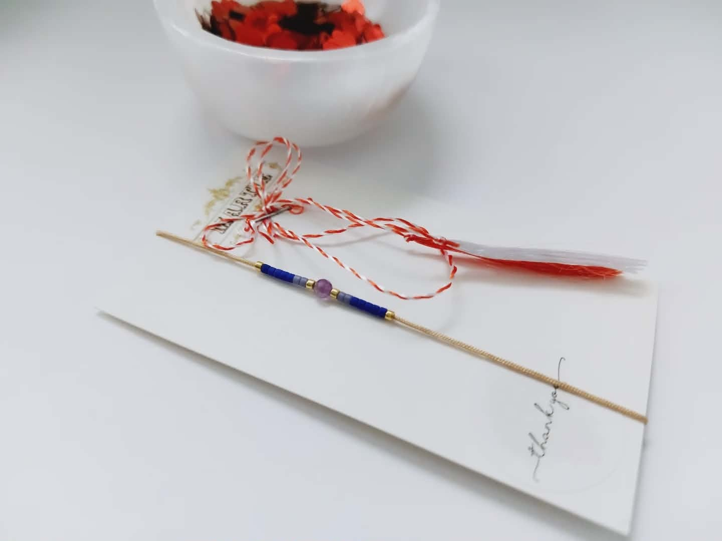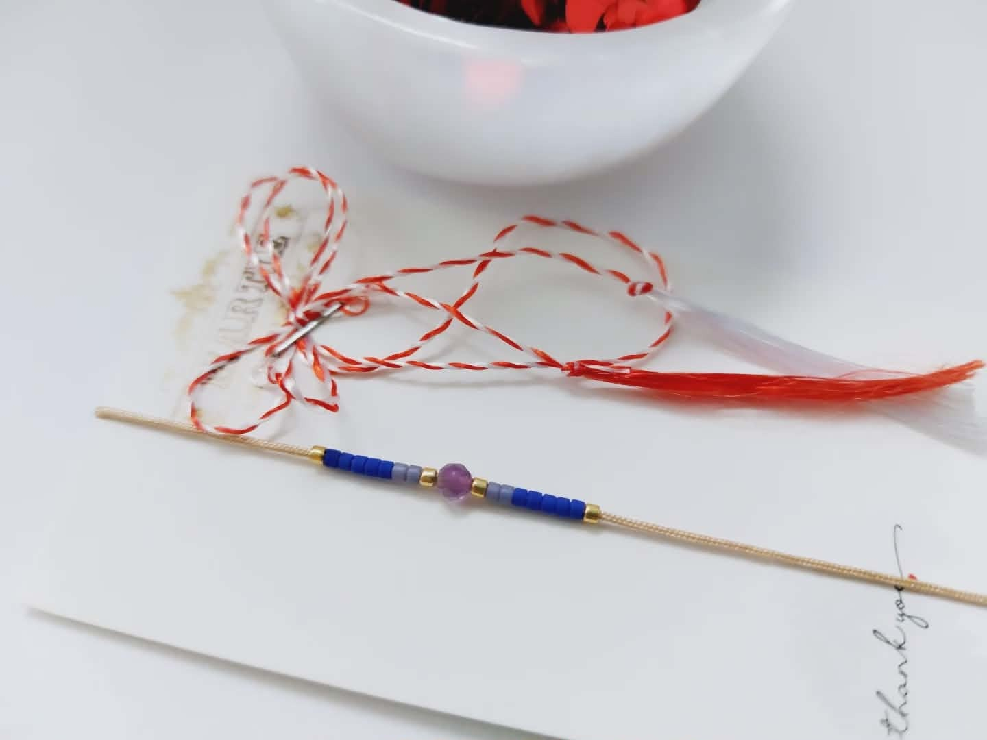 Ametistul este cunoscut ca piatra liniștii, intuiției, clarității și protecției. Mărgelele Miyuki adaugă profunzime și eleganță.